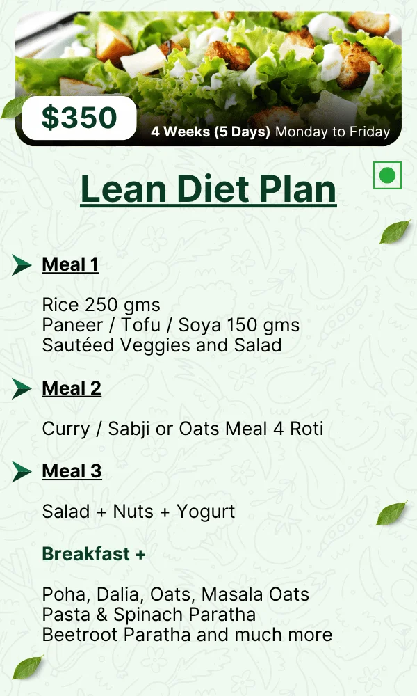 Flexible Plans: Choose from vegetarian or non-vegetarian options, with add-ons like gluten-free rotis, quinoa, or double veggies.